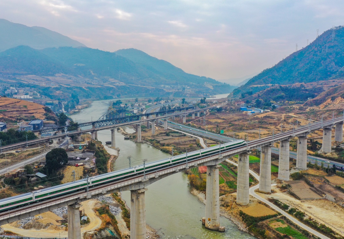 2022年12月26日,蜿蜒千里的新成昆鐵路全線貫通運營。復(fù)興號動車組從成都南站發(fā)出,沿著現(xiàn)代化的鐵路,奔馳在崇山峻嶺間。