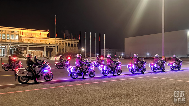 △當(dāng)晚,為馬科斯開道的摩托車隊(duì)。(總臺(tái)央視記者姚瑤拍攝)