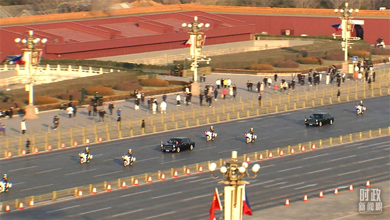 △馬科斯的車隊(duì)即將抵達(dá)人民大會(huì)堂。(總臺(tái)央視記者陸泓宇拍攝)