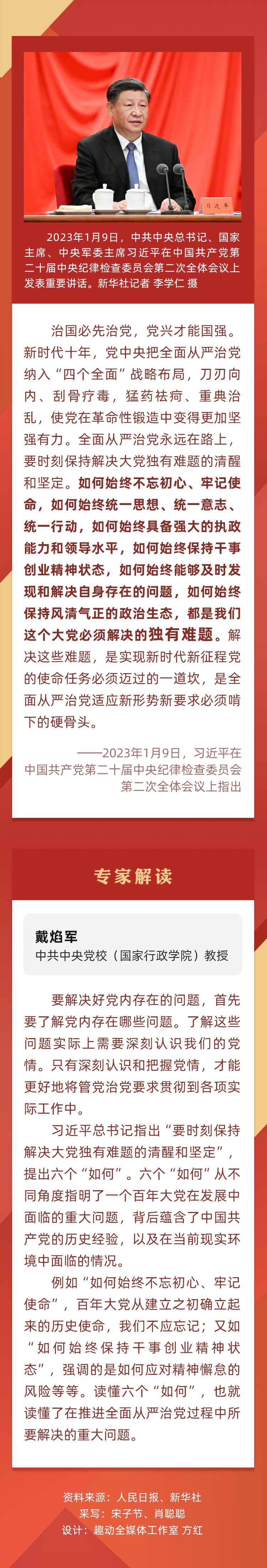 1月9日,中共中央總書記、國家主席、中央軍委主席習近平在中國共產(chǎn)黨第二十屆中央紀律檢查委員會第二次全體會議上發(fā)表重要講話。在講話中,習近平指出“要時刻保持解決大黨獨有難題的清醒和堅定”。人民網(wǎng)帶您重溫講話要點并邀請專家進行解讀。