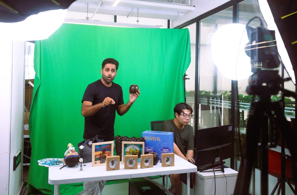 2025年9月22日,在海口復(fù)興城互聯(lián)網(wǎng)信息產(chǎn)業(yè)園,一名來自巴基斯坦的主播在直播間進(jìn)行直播帶貨。新華社記者 鄭悅 攝