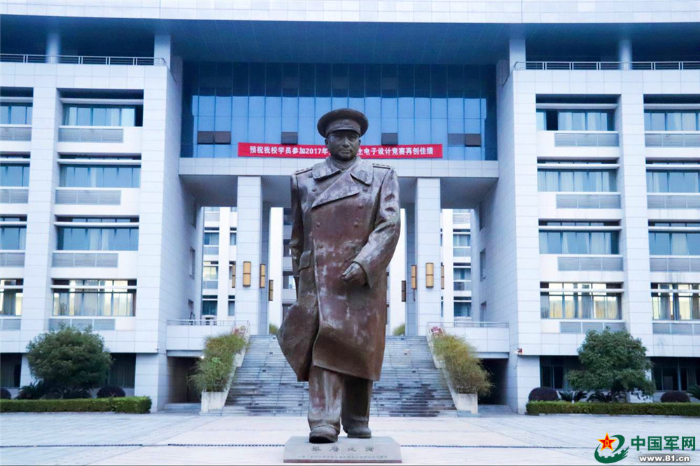 進(jìn)入國防科大三號院正門,便能看到這個(gè)標(biāo)志性建筑--陳賡大將雕像:學(xué)校的第一任校長兼政委陳賡大將,正邁著堅(jiān)實(shí)自信的步子,大踏步地朝前走去。在改革大潮中,我們軍校學(xué)員應(yīng)該如同陳賡大將一樣,堅(jiān)定自信,邁著豪邁的步伐,走向更加輝煌的明天。新形勢下,我們既要開拓進(jìn)取、走向未來,也要繼承革命前輩的優(yōu)良傳統(tǒng),并在強(qiáng)軍強(qiáng)國夢中把它發(fā)揚(yáng)光大!