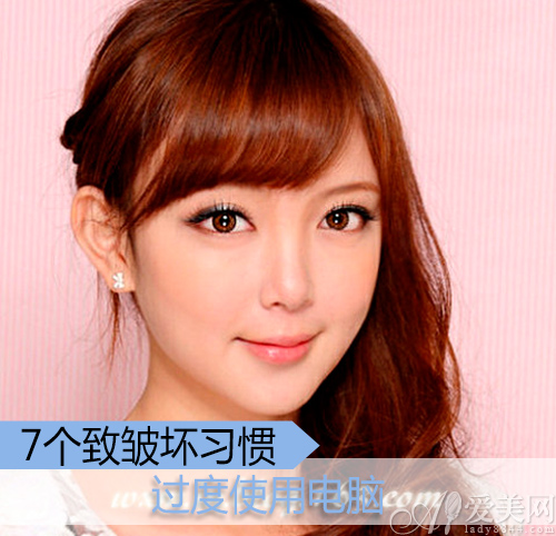 現(xiàn)在OL們使用電腦時間長達八、九小時。電腦屏幕的擺放位置應該比眼睛略低,以免為了看屏幕,長期抬眉造成抬頭紋;而有些人習慣皺眉或瞇眼睛看屏幕,也會造成皺眉紋及魚尾紋。