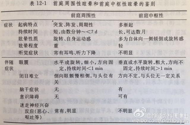 發(fā)病原因?qū)懥诉@么多,說明區(qū)分前庭周圍性和中樞性是件很重要的事。怎么區(qū)分?我們用下面這個(gè)圖表來說明。