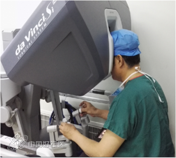 圖為高江平主任術中通過控制臺操控機器人系統(tǒng)