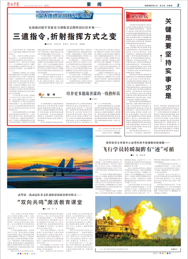 三道指令,折射指揮方式之變。該旅領導介紹,下一步,他們計劃將復盤檢討梳理出的“問題清單”轉化為訓練改進的“目標清單”,將戰(zhàn)場態(tài)勢感知納入營連考核指標,推動戰(zhàn)斗力建設穩(wěn)步提升。