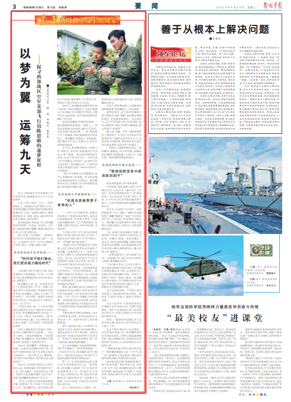 邁入體系練融合、奔赴高原挖潛能、用好平臺強(qiáng)能力、飛向世界揚(yáng)國威……一次次任務(wù)歸來,陳思麒的思考不斷深入。他經(jīng)常自我追問:如何把手中裝備的戰(zhàn)略功能更好釋放出來?