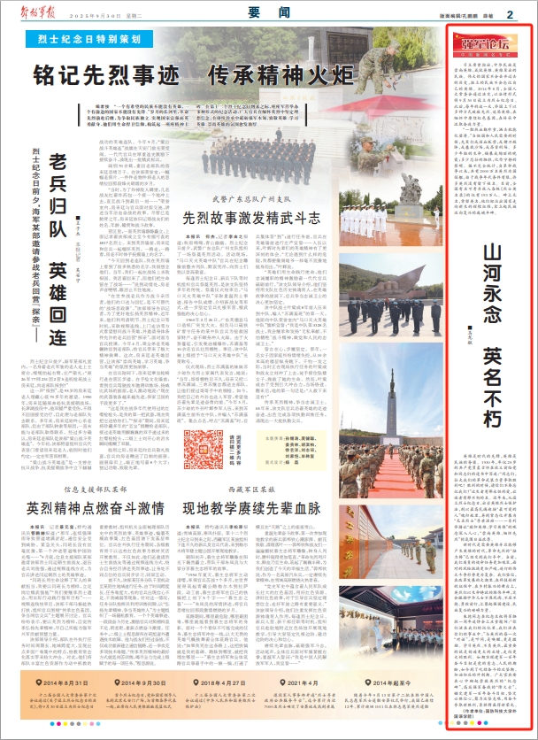 朱德同志在紀念左權將軍犧牲一周年追悼會上莊重題詞:“你們活在我們的記憶里,我們活在你們的事業(yè)中?!迸c英烈的每一次“對話”,是叩問,是喚醒,更是激勵。學習英烈、不負英烈,最重要的就是創(chuàng)造更大的業(yè)績,走向更大的勝利。如期實現(xiàn)建軍一百年奮斗目標是黨的意志、人民的期盼,如今到了吃勁奮斗的攻堅期、加油加壓的沖刺期。廣大官兵要在心中砌起崇敬英烈的“紀念碑”,高筑強軍備戰(zhàn)的“烽火臺”,錨定建軍一百年奮斗目標,堅定必勝信心,聚力攻堅克難,用奮斗奪取新勝利,靠拼搏贏得新榮光。
