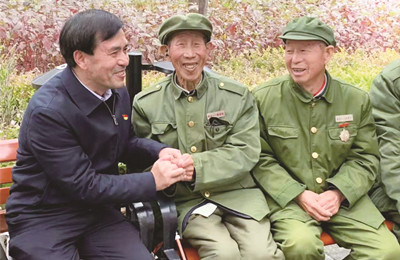 王友民(左一)到延安八一敬老院慰問老兵。