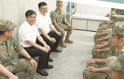 王友民(左二)到駐軍部隊與基層官兵座談。