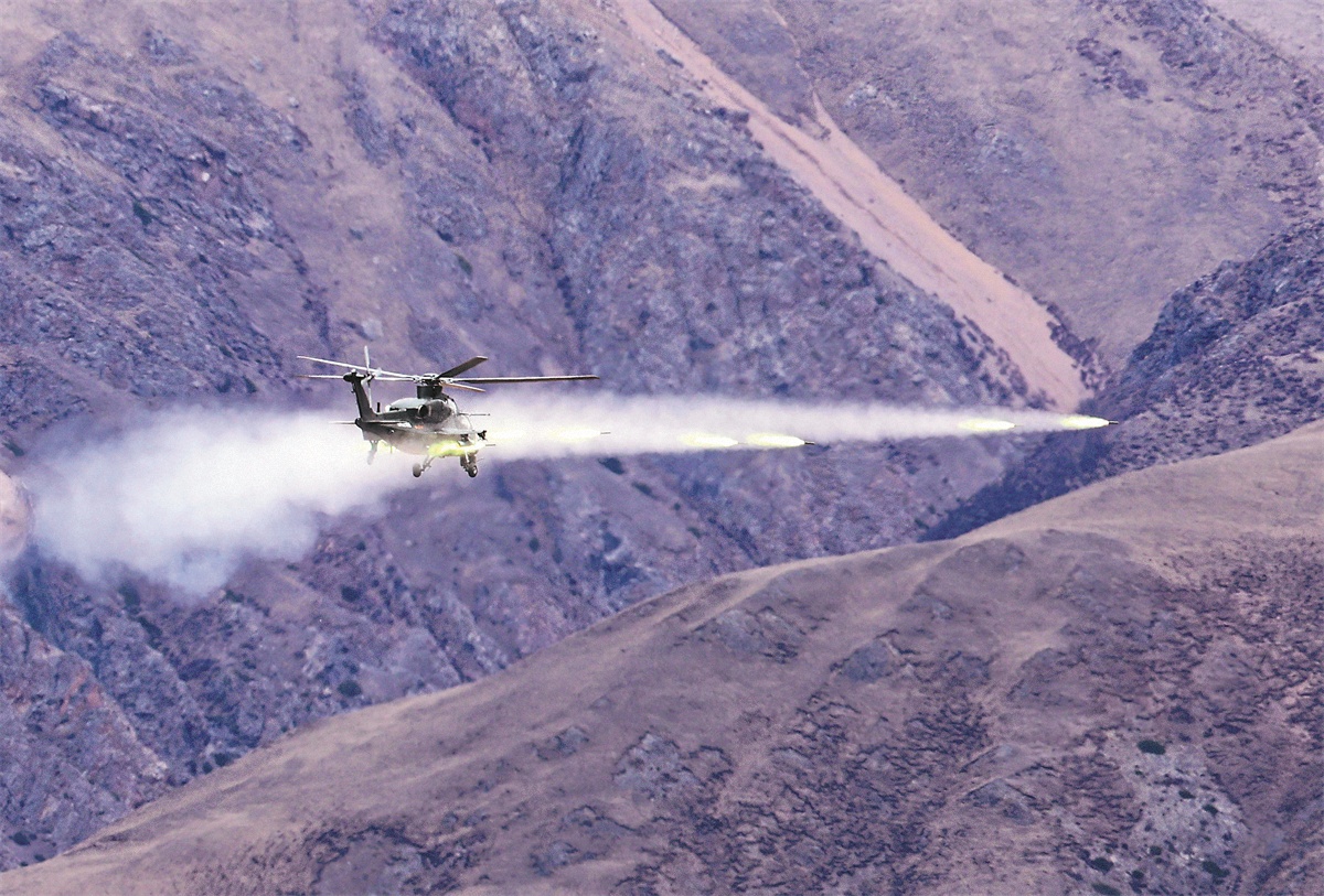 到達目標空域,編隊借助地形進行低空突防,向“敵”前沿陣地快速突進。俯沖、瞄準、射擊……一枚枚火箭彈呼嘯而出。伴著震耳欲聾的爆炸聲,多個“敵”目標被成功摧毀。