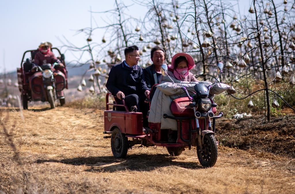 全國人大代表袁海波(右三)在云南省曲靖市馬龍區(qū)一種植基地了解務(wù)工人員就業(yè)需求(2023年2月11日攝)。新華社記者 江文耀 攝