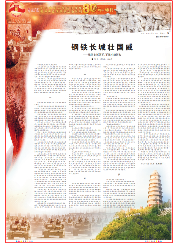 硝煙遠(yuǎn)逝,歷史有痕。在世界百年變局加速演進的今天,重溫艱苦卓絕的抗戰(zhàn)歲月,回望人民軍隊在黨的堅強領(lǐng)導(dǎo)下浴血奮戰(zhàn)、由弱到強的光輝歷程,讓我們更加深切感到強國強軍的使命召喚、責(zé)任如山!