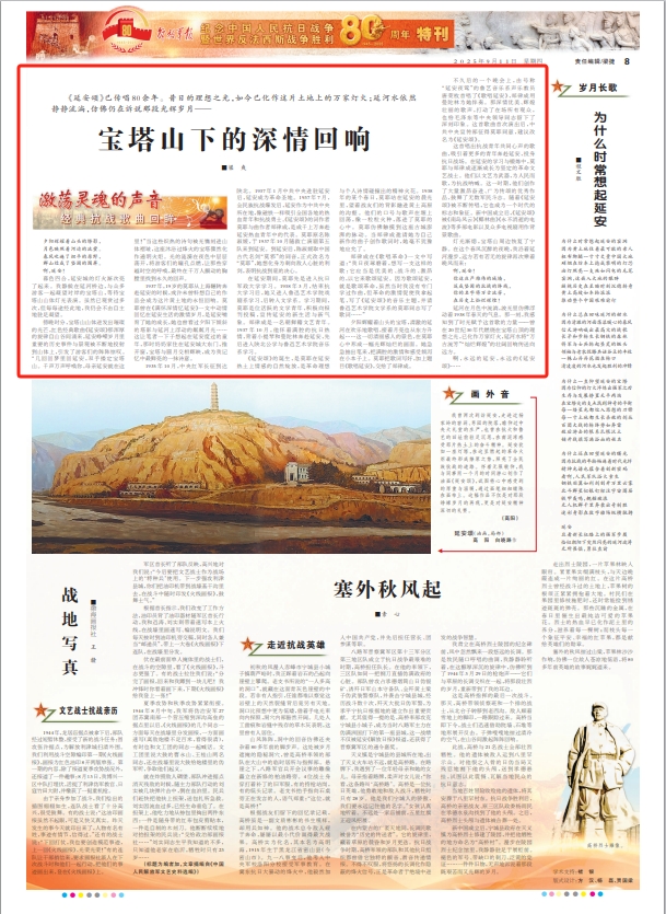 延河在月色中流淌,波光里仿佛浮動著1938年春天的氣息。那一刻,我感知到了時光賦予這首歌的力量——曾在20世紀30年代燃燒在寶塔山頂的理想之光,已化作萬家燈火,延河水將“萬古流芳”“燦爛輝煌”的壯闊回響傳送向遠方。