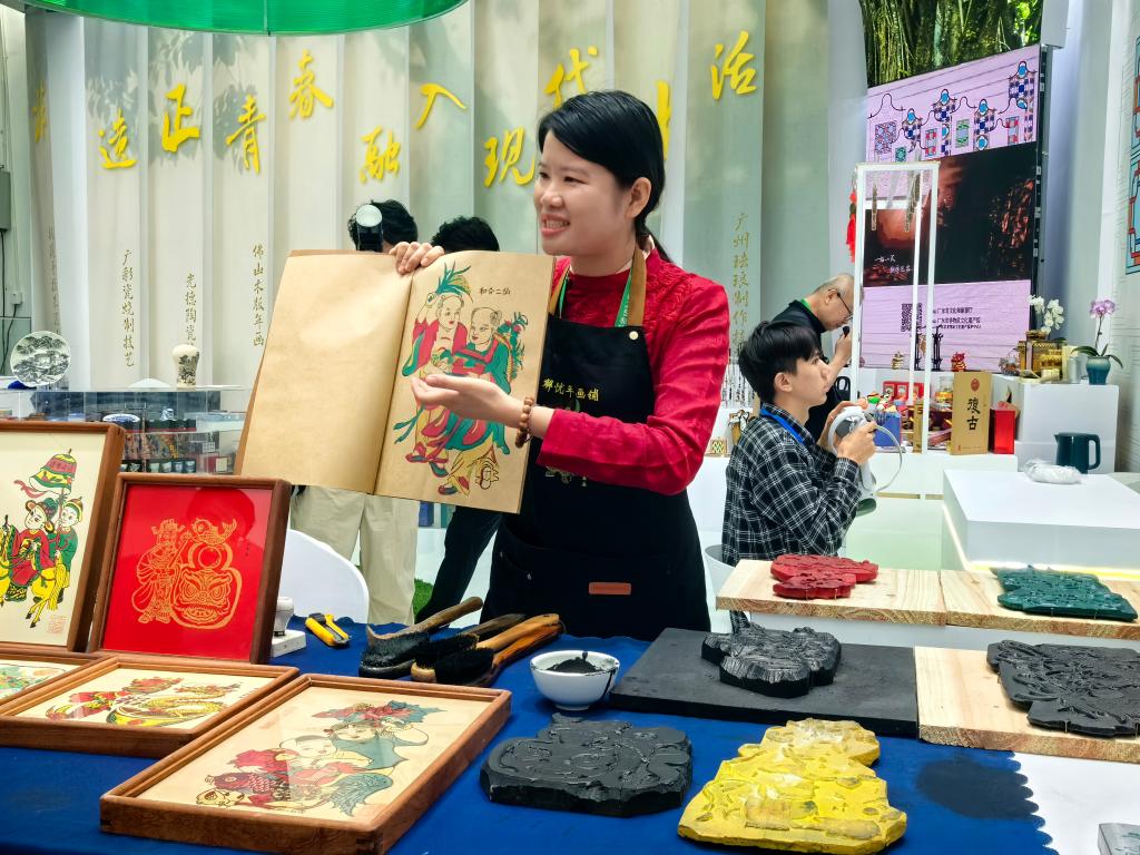 “要讓非遺‘潮’起來。”國家級非物質(zhì)文化遺產(chǎn)代表性項目佛山木版年畫市級代表性傳承人劉鐘萍的作品也引人注目。這位“80后”致力于將佛山木版年畫以青春的語言重新演繹,在“解憂年畫鋪”展位推出“逢考必過”“脫單神器”等符合年輕人需求的木版年畫作品。