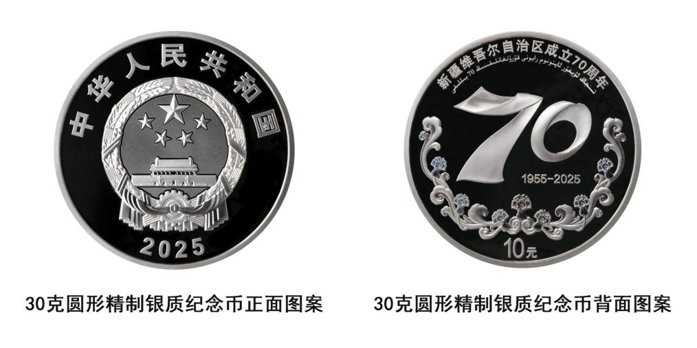記者9月16日從中國人民銀行獲悉,中國人民銀行定于9月19日發(fā)行新疆維吾爾自治區(qū)成立70周年金銀紀(jì)念幣一套。該套金銀紀(jì)念幣共2枚,其中金質(zhì)紀(jì)念幣1枚,銀質(zhì)紀(jì)念幣1枚,均為中華人民共和國法定貨幣。
