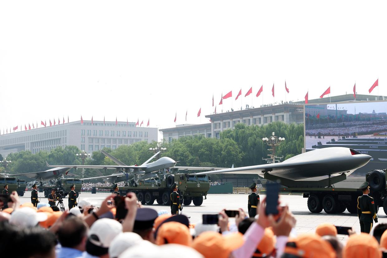 這是空中無人作戰(zhàn)方隊(duì)接受檢閱