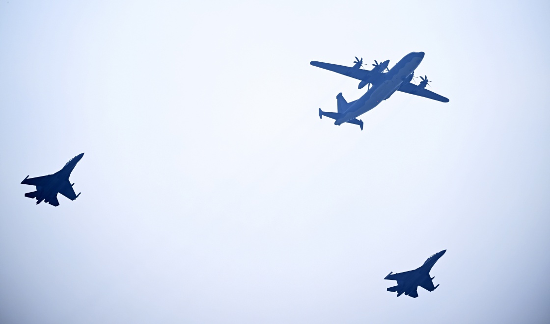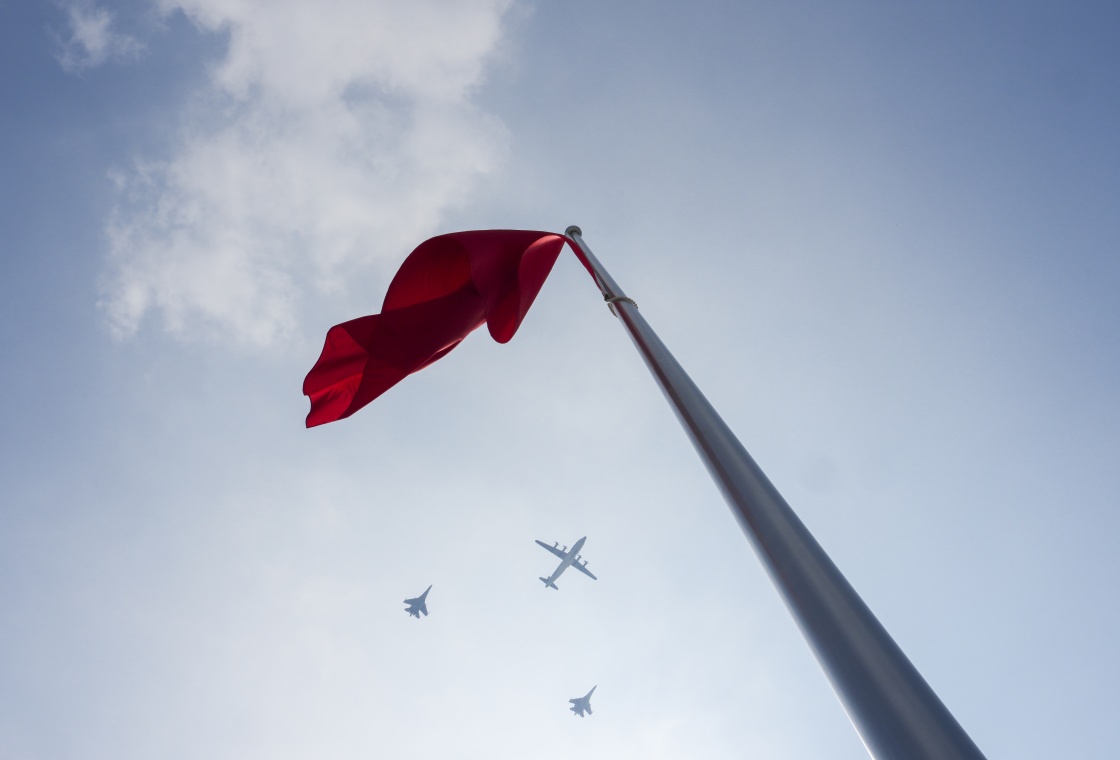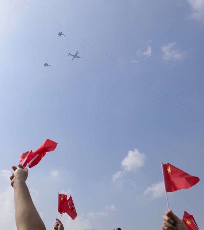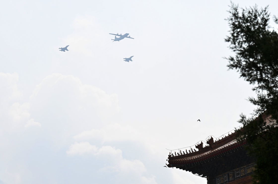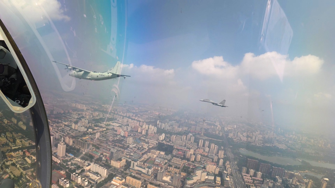 9月3日,紀(jì)念中國人民抗日戰(zhàn)爭暨世界反法西斯戰(zhàn)爭勝利80周年大會(huì)在北京隆重舉行。這是特種機(jī)梯隊(duì)從北京城區(qū)上空飛過。