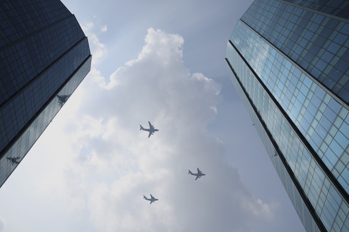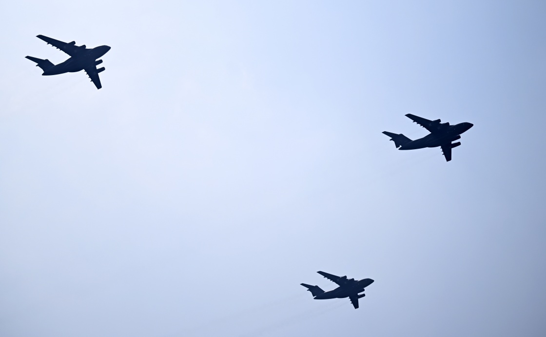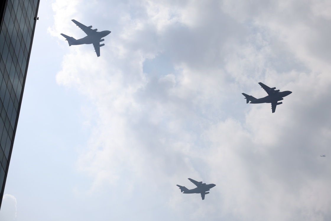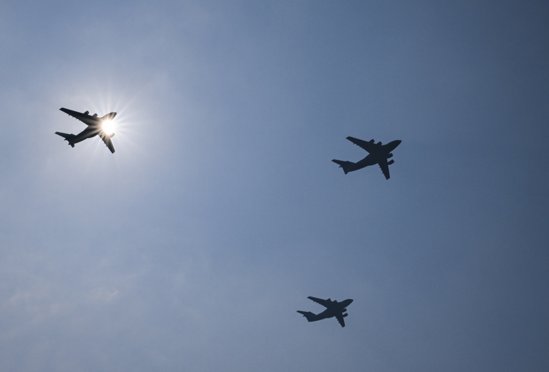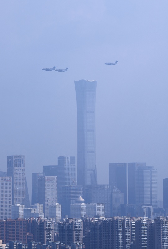 9月3日,紀念中國人民抗日戰(zhàn)爭暨世界反法西斯戰(zhàn)爭勝利80周年大會在北京隆重舉行。這是在北京天壇公園拍攝的運輸機梯隊。