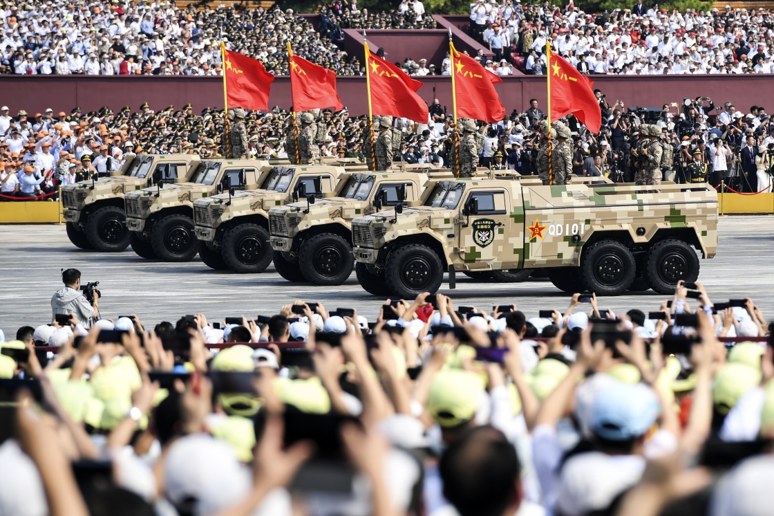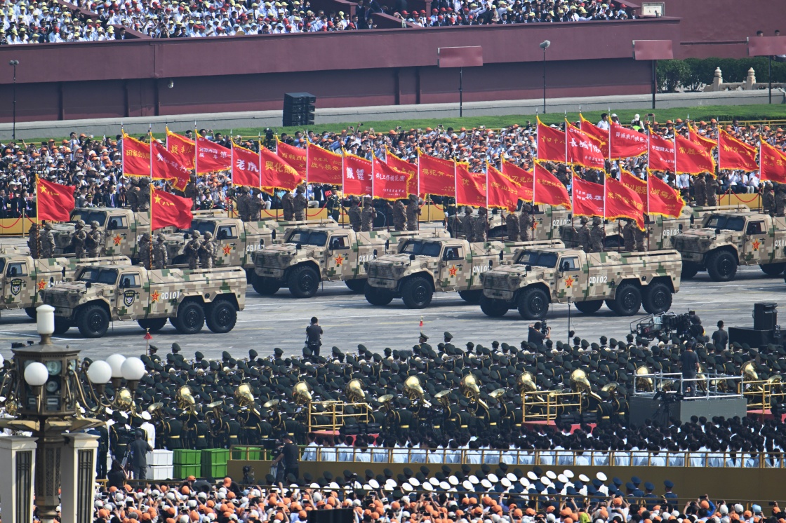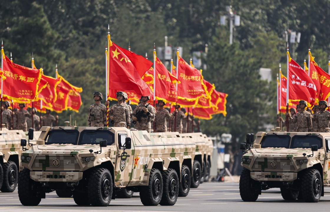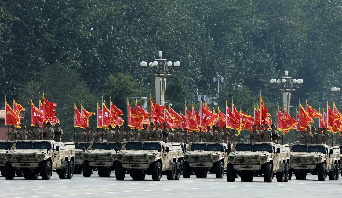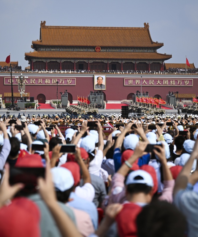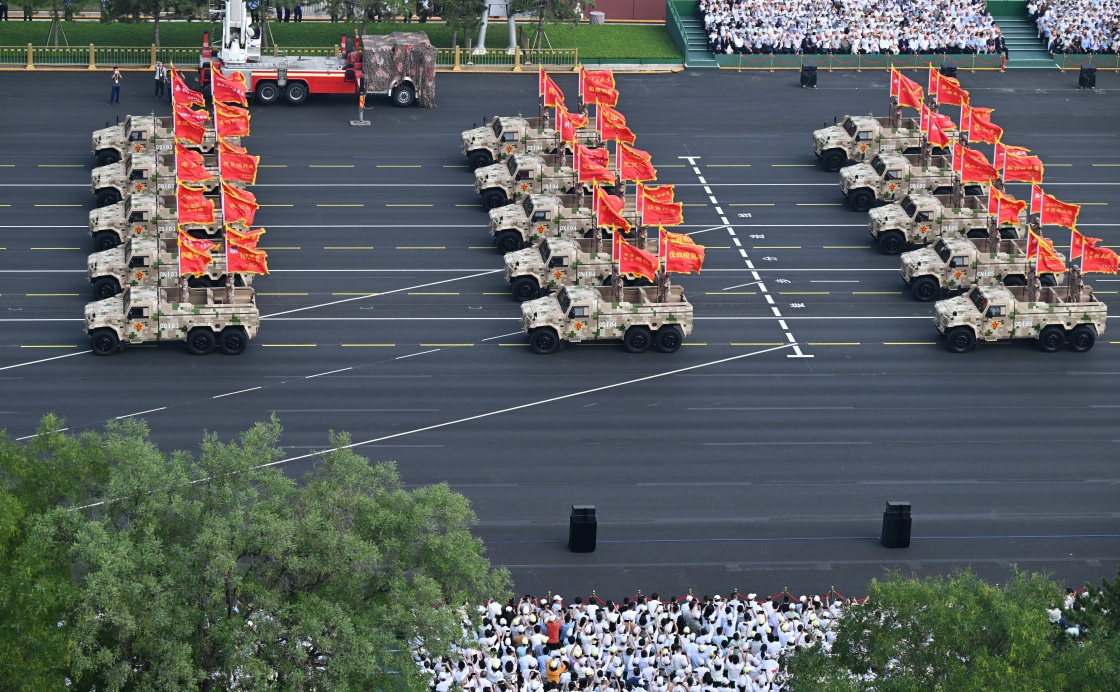 9月3日,紀(jì)念中國(guó)人民抗日戰(zhàn)爭(zhēng)暨世界反法西斯戰(zhàn)爭(zhēng)勝利80周年大會(huì)在北京隆重舉行。這是戰(zhàn)旗方隊(duì)接受檢閱。