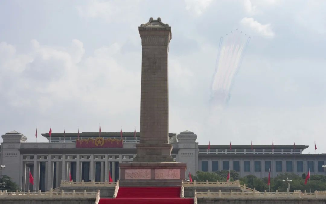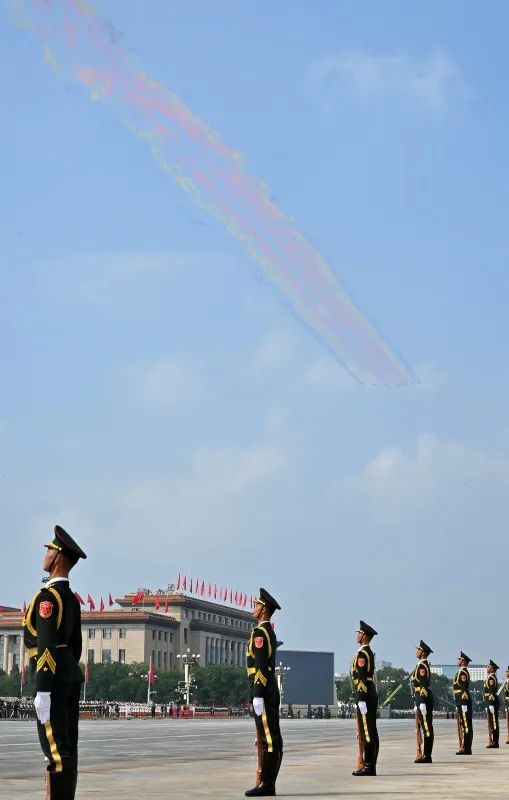 9月3日,紀(jì)念中國(guó)人民抗日戰(zhàn)爭(zhēng)暨世界反法西斯戰(zhàn)爭(zhēng)勝利80周年大會(huì)在北京隆重舉行。這是教練機(jī)梯隊(duì)飛過(guò)天安門廣場(chǎng)上空。新華社記者 殷博古 攝