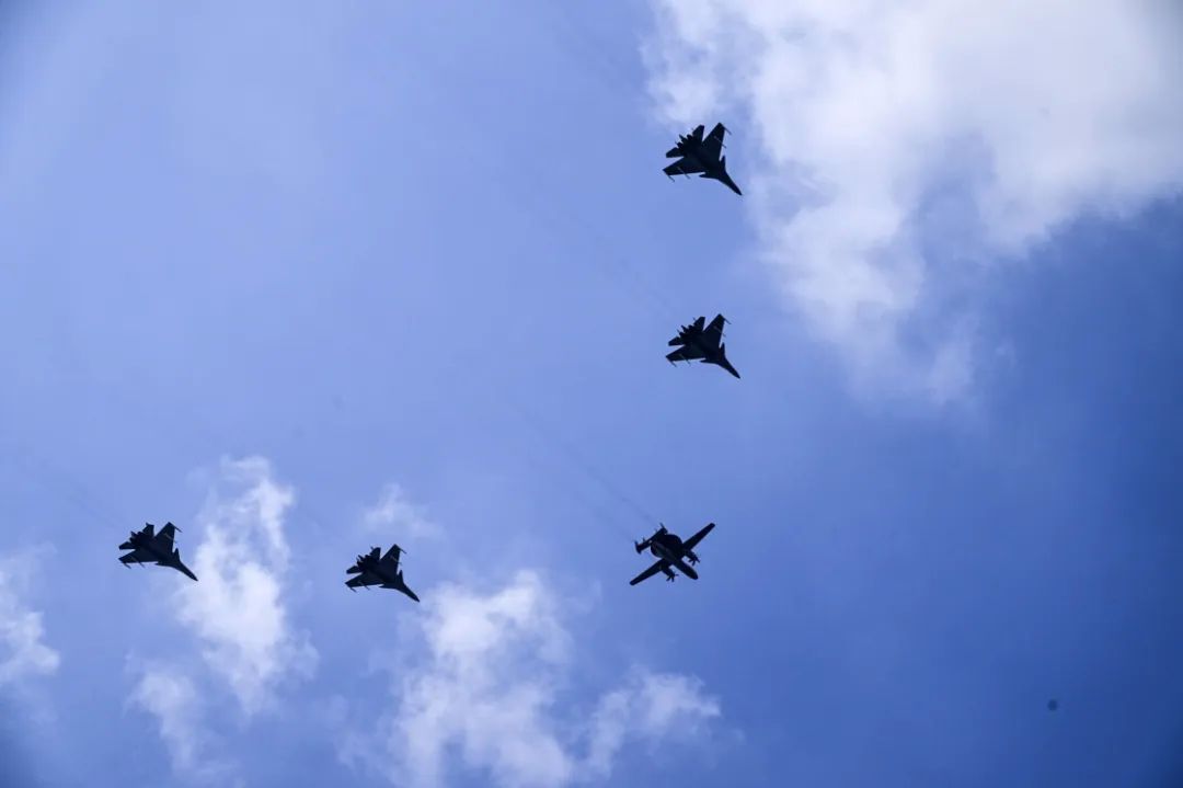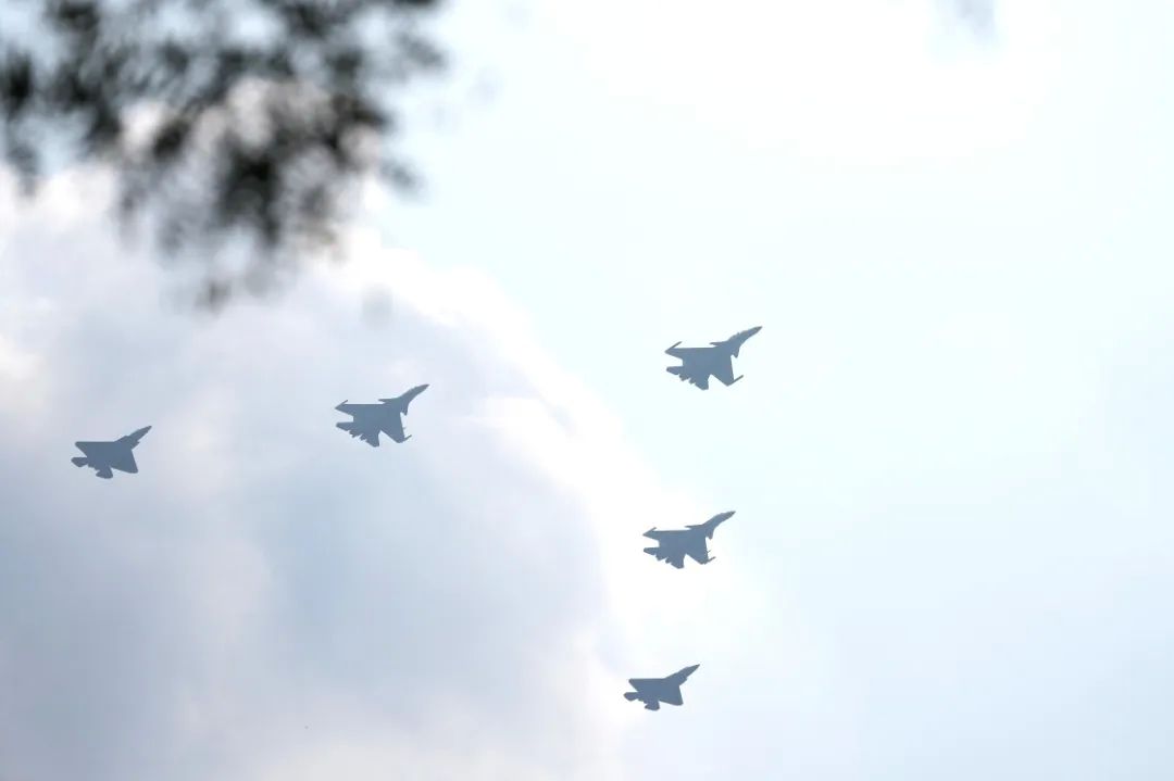 9月3日,紀(jì)念中國(guó)人民抗日戰(zhàn)爭(zhēng)暨世界反法西斯戰(zhàn)爭(zhēng)勝利80周年大會(huì)在北京隆重舉行。這是殲擊機(jī)梯隊(duì)接受檢閱。新華社記者 連振 攝