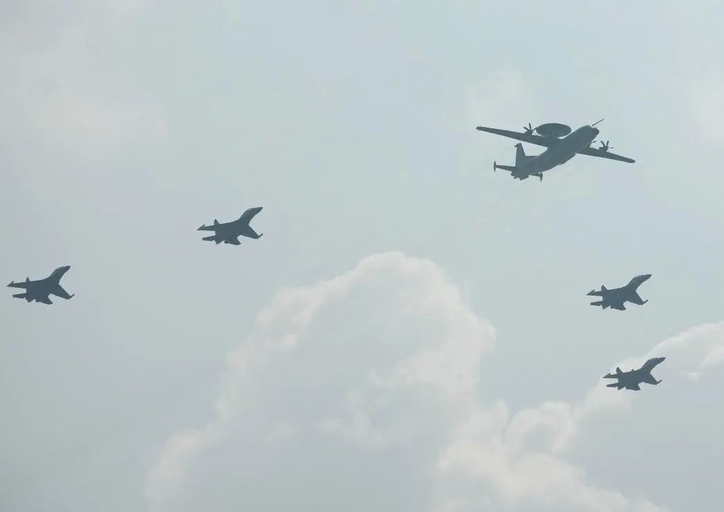 9月3日,紀(jì)念中國(guó)人民抗日戰(zhàn)爭(zhēng)暨世界反法西斯戰(zhàn)爭(zhēng)勝利80周年大會(huì)在北京隆重舉行。這是預(yù)警指揮機(jī)梯隊(duì)接受檢閱。新華社記者 樊雨晴 攝