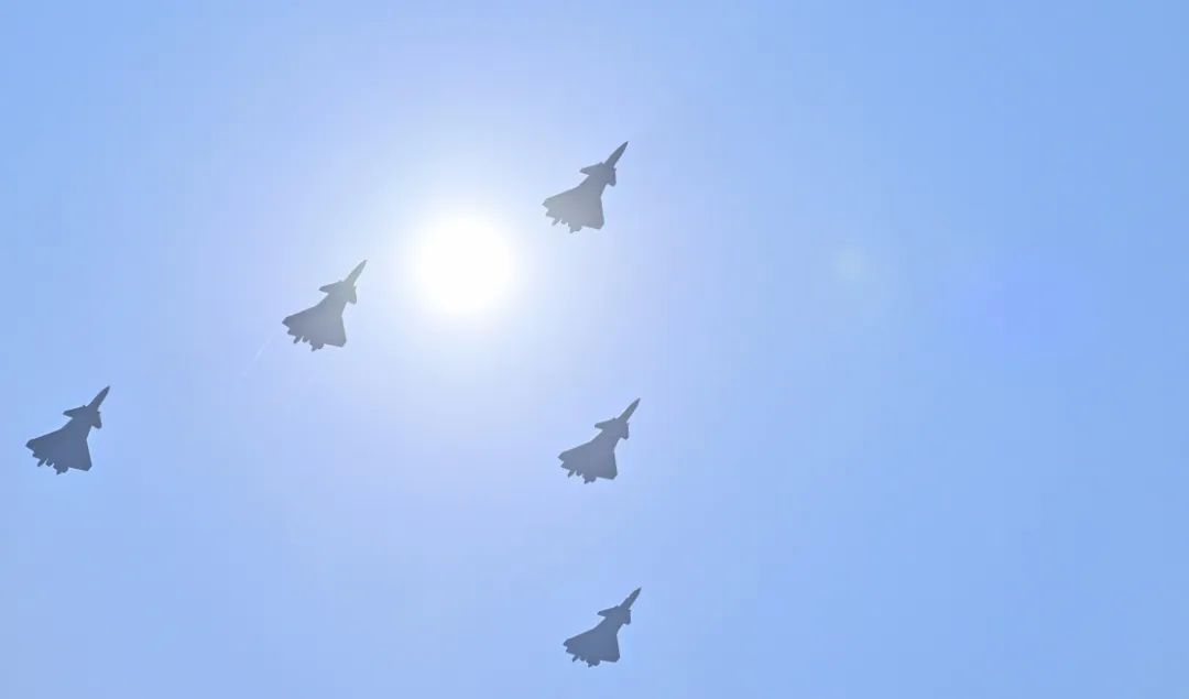9月3日,紀(jì)念中國(guó)人民抗日戰(zhàn)爭(zhēng)暨世界反法西斯戰(zhàn)爭(zhēng)勝利80周年大會(huì)在北京隆重舉行。這是殲擊機(jī)梯隊(duì)接受檢閱。新華社記者 孫瑞博 攝