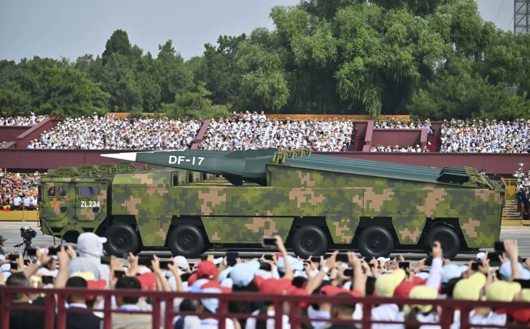 9月3日,紀(jì)念中國人民抗日戰(zhàn)爭暨世界反法西斯戰(zhàn)爭勝利80周年大會在北京隆重舉行。這是高超聲速導(dǎo)彈方隊通過天安門廣場。新華社記者 孫瑞博 攝