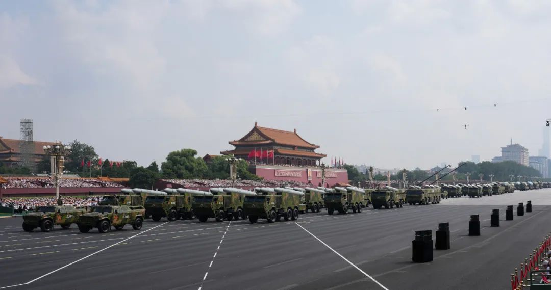 9月3日,紀(jì)念中國人民抗日戰(zhàn)爭暨世界反法西斯戰(zhàn)爭勝利80周年大會在北京隆重舉行。這是高超聲速導(dǎo)彈方隊接受檢閱。新華社記者 陳誠 攝
