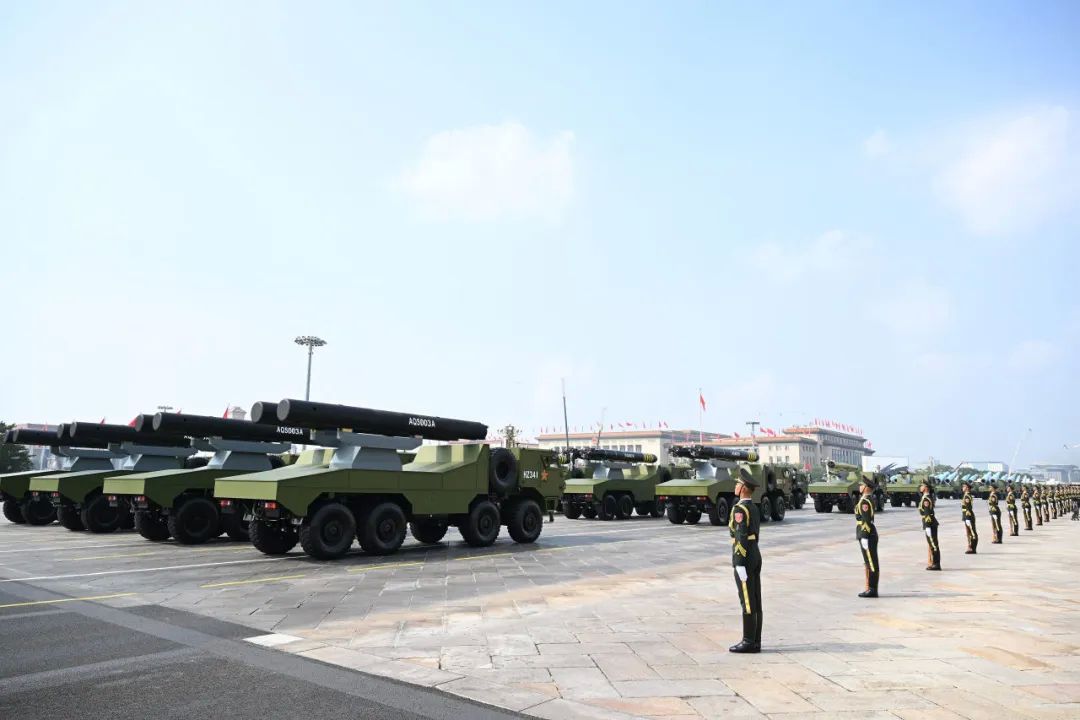 9月3日,紀(jì)念中國人民抗日戰(zhàn)爭暨世界反法西斯戰(zhàn)爭勝利80周年大會在北京隆重舉行。這是遠(yuǎn)程火炮方隊接受檢閱。新華社記者 陳誠 攝
