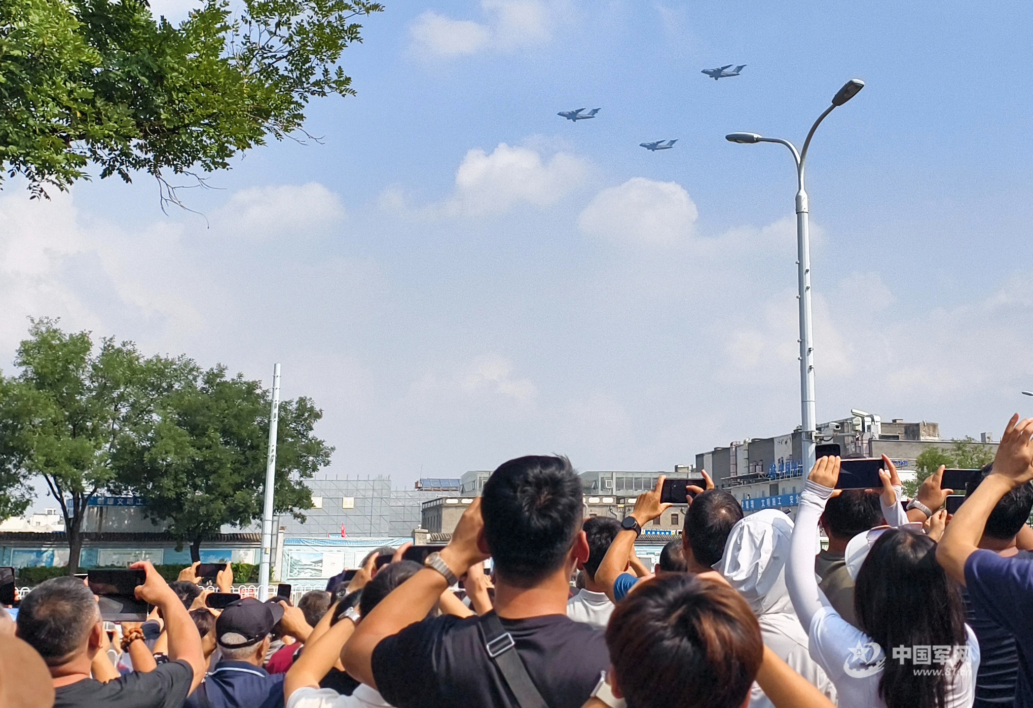 9月3日上午,紀(jì)念中國(guó)人民抗日戰(zhàn)爭(zhēng)暨世界反法西斯戰(zhàn)爭(zhēng)勝利80周年大會(huì)在北京天安門廣場(chǎng)隆重舉行。受閱機(jī)群曳彩如虹、聲震云霄,首都各界群眾紛紛走上街頭,用相機(jī)定格這激動(dòng)人心的瞬間。(中國(guó)軍網(wǎng)記者 張智程、孫悅 攝影)