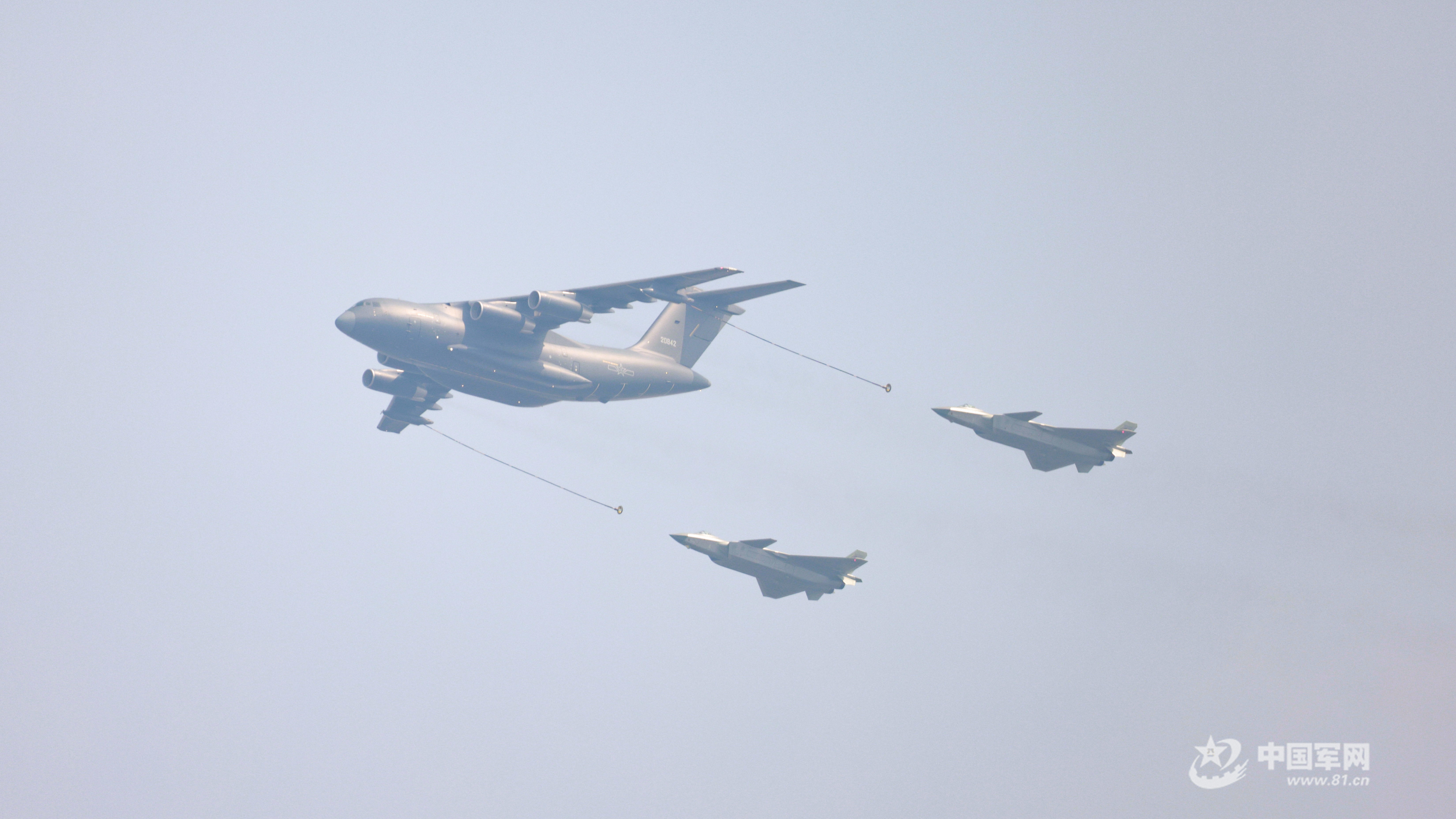 加受油機(jī)梯隊(duì)受閱戰(zhàn)機(jī)。