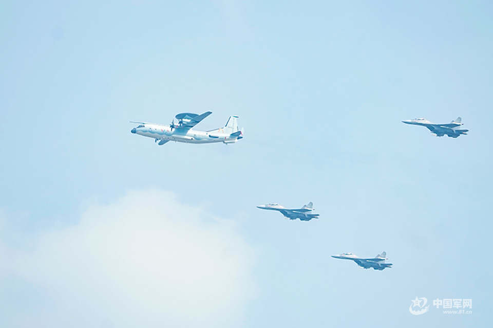 預(yù)警指揮機(jī)梯隊(duì)受閱戰(zhàn)機(jī)。