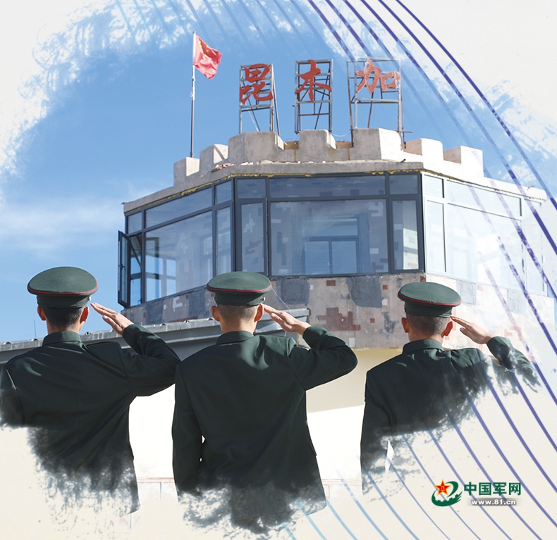 哨所退役老兵向第三代昆木加哨樓敬禮告別。