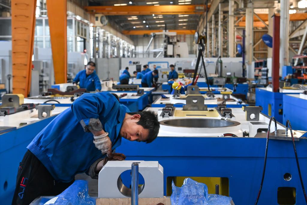 2月26日,工作人員在位于寶雞市渭濱區(qū)的陜西秦川機(jī)床工具集團(tuán)股份公司生產(chǎn)車間加工零部件。新華社記者 鄒競一 攝