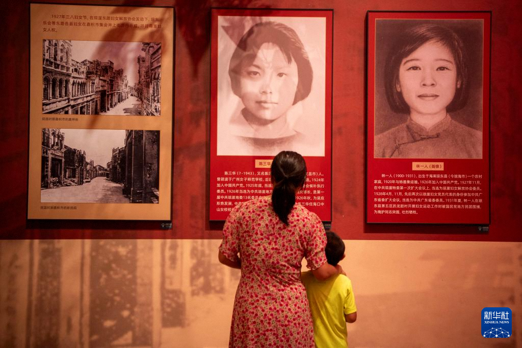 10月2日,家長帶著孩子在海南省瓊海市紅色娘子軍紀(jì)念園參觀。新華社發(fā)(蒙鐘德攝)