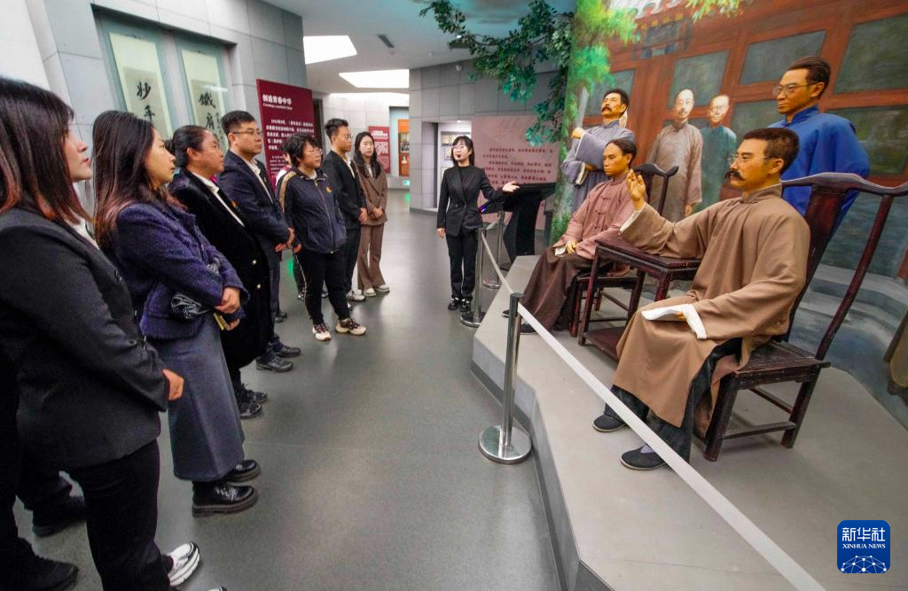10月8日,游客在河北省唐山市樂亭縣李大釗紀(jì)念館參觀。新華社發(fā)(劉滿倉攝)