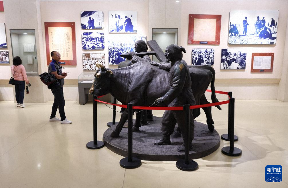 10月8日,游客在河北省平山縣西柏坡紀(jì)念館參觀。新華社發(fā)(梁子棟攝)
