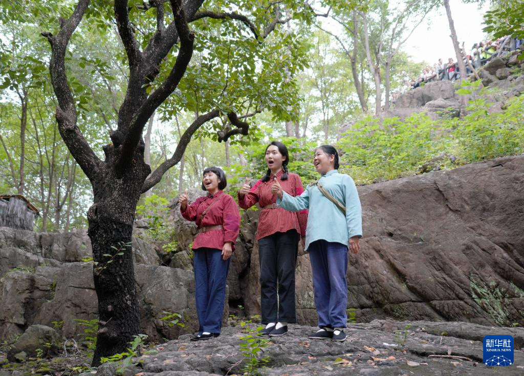 10月3日在位于山東省臨沂市沂南縣的山東紅嫂家鄉(xiāng)旅游區(qū)拍攝的沉浸式體驗項目《重走支前路》中的一個環(huán)節(jié)。新華社發(fā)(尹君攝)
