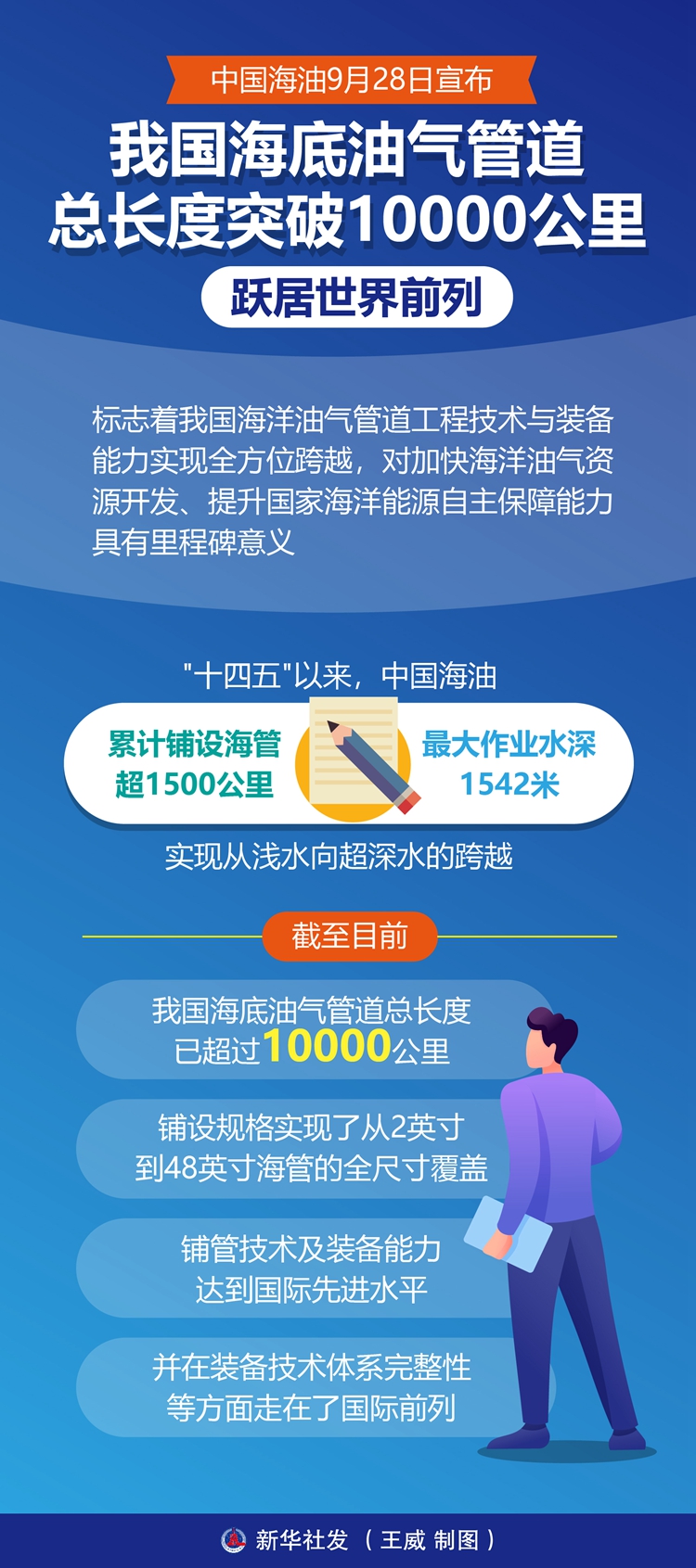 “十四五”以來,中國海油依托重大工程項(xiàng)目,聯(lián)合國內(nèi)高校、科研院所和產(chǎn)業(yè)鏈上下游企業(yè)持續(xù)加大原創(chuàng)性技術(shù)攻關(guān),累計鋪設(shè)海管超1500公里,最大作業(yè)水深1542米,實(shí)現(xiàn)從淺水向超深水的跨越。