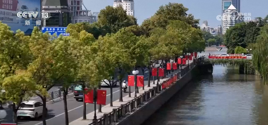 同樣,這幾天,江蘇多地也在打造濃濃的節(jié)日氛圍。在南通濠河邊,鮮艷的國旗像一簇簇跳動的火焰,與濠河的粼粼波光、兩岸的綠樹蔥蘢交相輝映,構(gòu)成了一幅流動的中國紅畫卷。