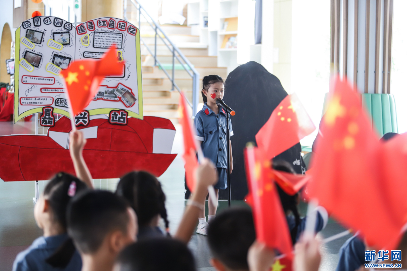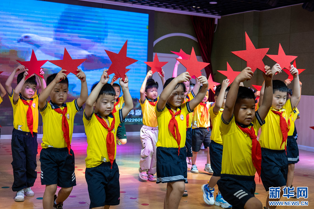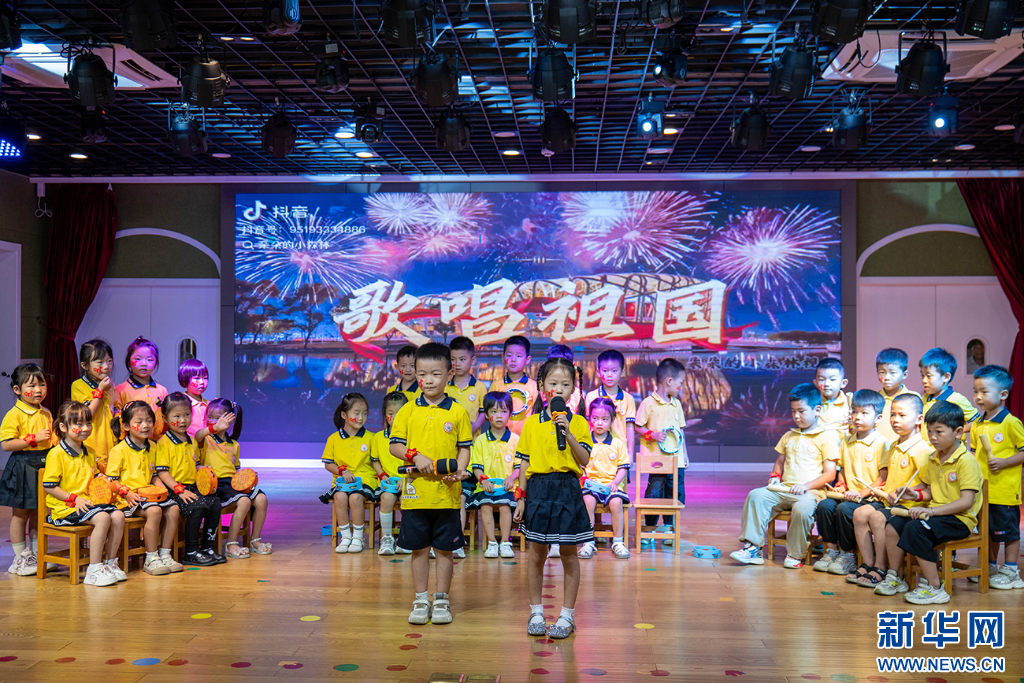 小朋友正在表演舞蹈《我和我的祖國(guó)》。新華網(wǎng)發(fā) 韓海建 攝