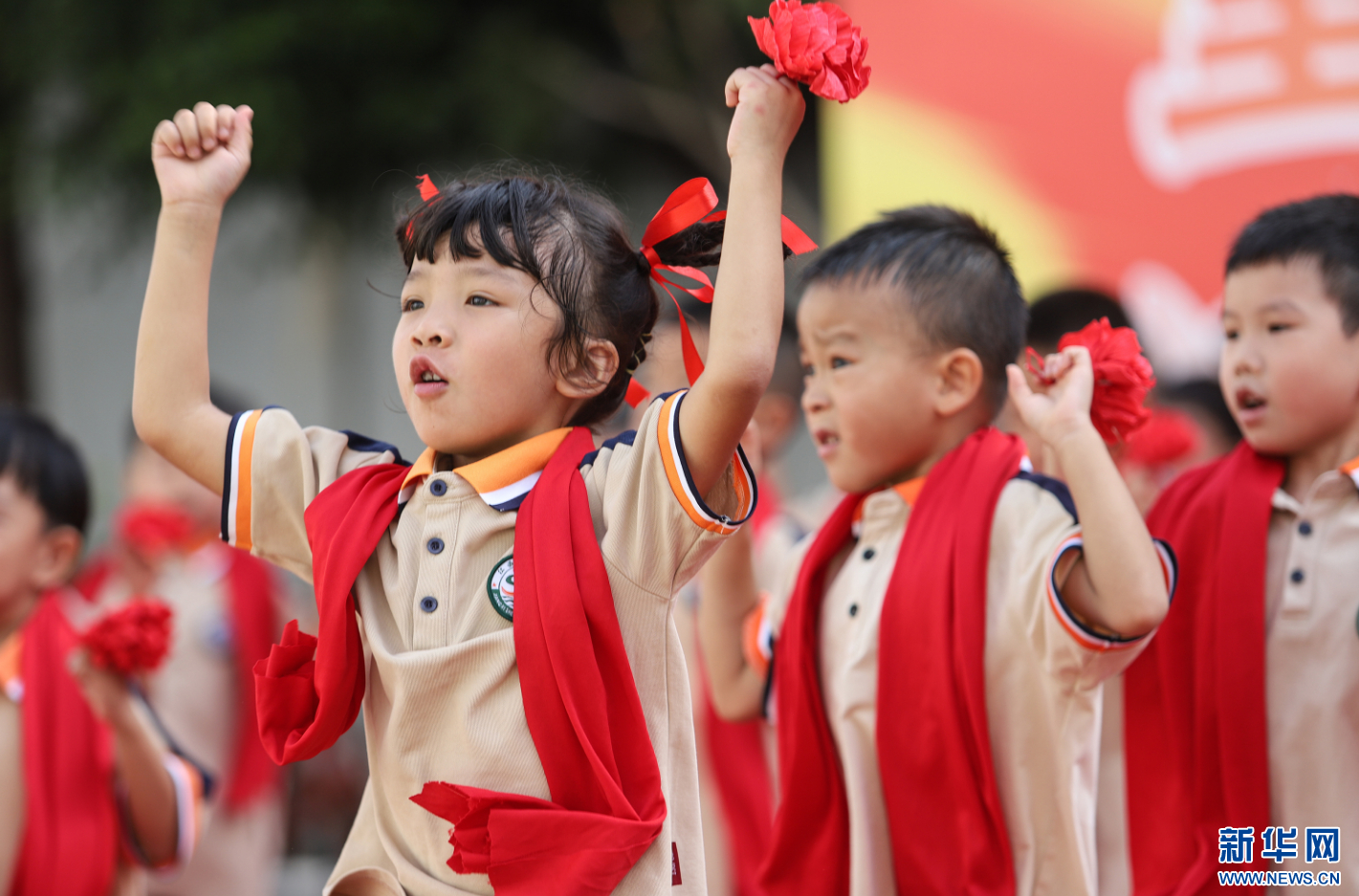 余干縣第一幼兒園小朋友表演節(jié)目《我心中的那抹紅》。新華網(wǎng)發(fā) 韓海建 攝