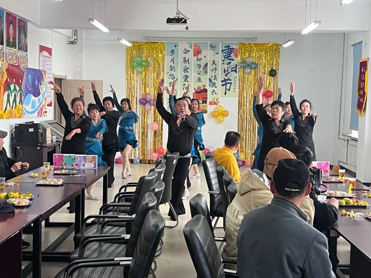 活動中,社區(qū)工作人員早早備好了清香四溢的菊花茶、軟糯香甜的重陽糕以及各式新鮮水果。老人們圍坐在一塊兒,手捧著溫熱的菊花茶,金黃的菊瓣在水中舒展,熱氣裹著清香飄到鼻尖。大家你一言我一語,在輕松愉快的氛圍中閑話家常,分享養(yǎng)生心得,暢談晚年幸福生活,并為社區(qū)養(yǎng)老服務提出寶貴建議,現(xiàn)場歡聲笑語不斷,其樂融融,笑聲伴著淡淡的菊香在空氣中飄蕩。社區(qū)工作人員將軟糯香甜的重陽糕遞到老人手里,甜香瞬間在空氣中散開,軟糯的糕體綴著細碎果料,遞去的不僅是點心,更是滿滿的節(jié)日暖意。品糕的間隙,激情歡快表演悄然開場,太極拳、太極扇、水兵舞等每一個節(jié)目都帶著濃濃的生活氣息,他們眼里的光彩和認真的模樣,正是重陽最美的風景。