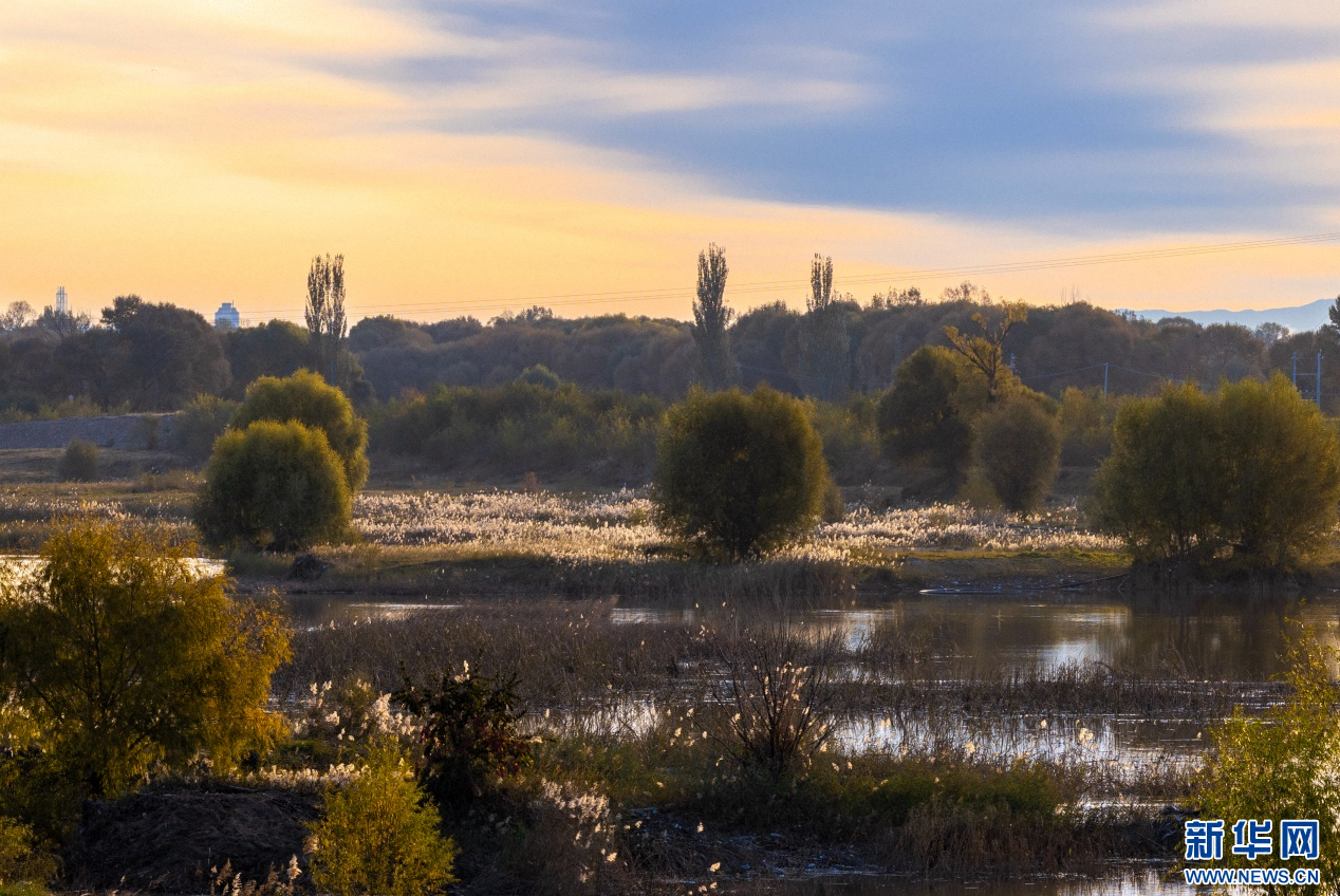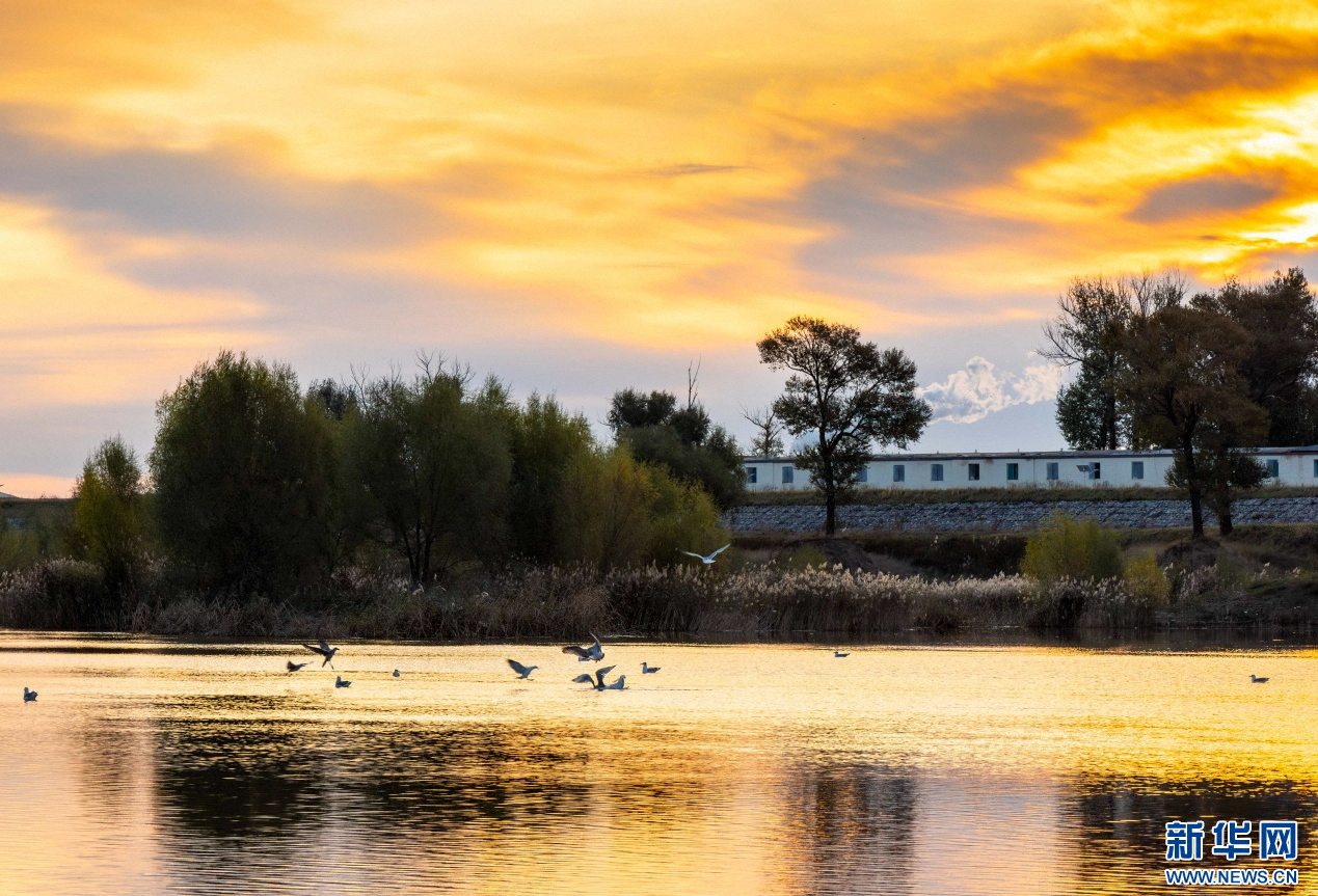深秋時節(jié)的內(nèi)蒙古自治區(qū)呼和浩特市玉泉區(qū)大黑河郊野公園,碧水映紅霞,飛鳥舞秋風,勾勒出一幅醉人的秋日畫卷。