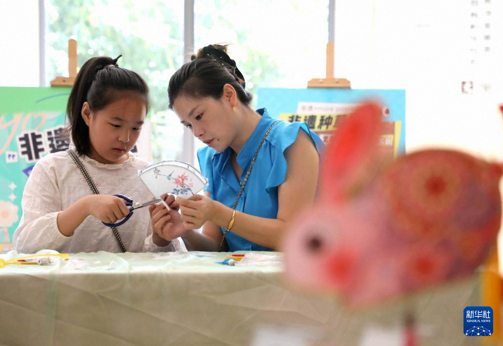 10月6日,在江蘇省江陰市新時(shí)代文明實(shí)踐中心,小朋友和家長一起制作月餅。新華社發(fā)(還月亮攝)