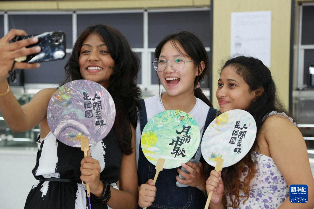 10月6日,在位于云南省蒙自市的紅河學(xué)院,中外學(xué)生參加“千里共嬋娟,青年話團(tuán)圓”中秋節(jié)茶話會(huì)活動(dòng)。新華社發(fā)(薛瑩瑩攝)