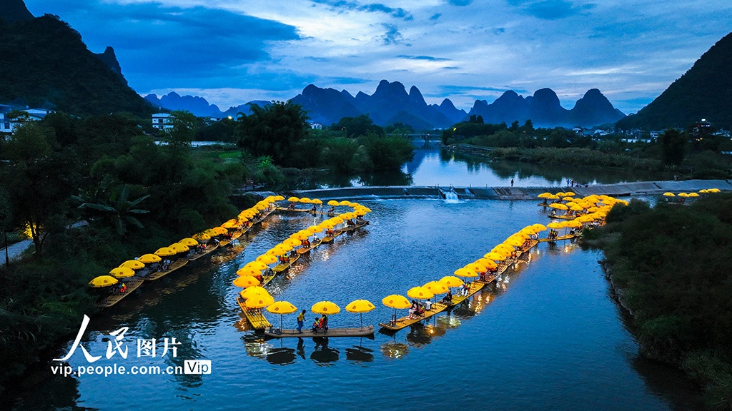 10月6日晚,廣西桂林市陽朔縣白沙鎮(zhèn),“金龍巡游”活動精彩上演。周秀魚春攝(人民圖片網)
