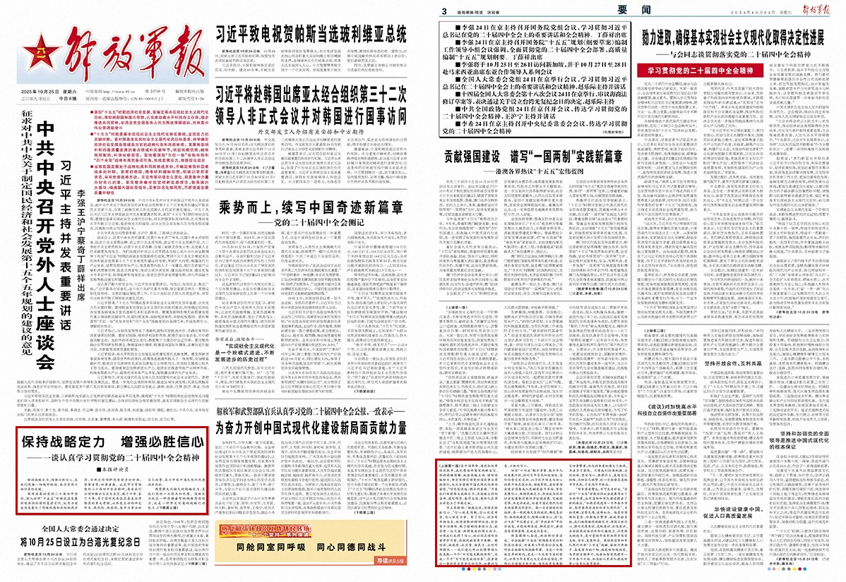 “所當(dāng)乘者勢(shì)也,不可失者時(shí)也。”全會(huì)對(duì)“十五五”時(shí)期經(jīng)濟(jì)社會(huì)發(fā)展作出了全面部署,也對(duì)國(guó)防和軍隊(duì)建設(shè)提出了新的要求?!叭缙趯?shí)現(xiàn)建軍一百年奮斗目標(biāo),高質(zhì)量推進(jìn)國(guó)防和軍隊(duì)現(xiàn)代化”,目標(biāo)明晰,前景光明,使命如山。越是形勢(shì)錯(cuò)綜復(fù)雜、任務(wù)艱巨繁重、挑戰(zhàn)考驗(yàn)直接,我們?cè)揭3謶?zhàn)略定力、增強(qiáng)必勝信心,強(qiáng)化憂患意識(shí)、危機(jī)意識(shí)、打仗意識(shí),全面提高訓(xùn)練水平和打贏能力,以更強(qiáng)大的能力、更可靠的手段堅(jiān)決捍衛(wèi)國(guó)家主權(quán)、安全、發(fā)展利益。要按照國(guó)防和軍隊(duì)現(xiàn)代化新“三步走”戰(zhàn)略,保持只爭(zhēng)朝夕、奮發(fā)有為的干勁,越是艱險(xiǎn)越向前,甩開(kāi)膀子拼命干,向著如期實(shí)現(xiàn)建軍一百年奮斗目標(biāo)、加快把人民軍隊(duì)建成世界一流軍隊(duì)奮勇前進(jìn)。